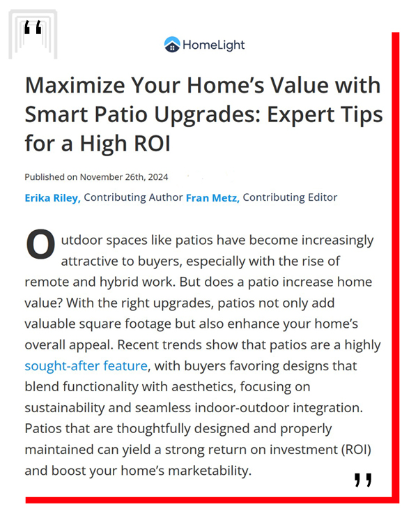 HomeLight explains how patio upgrades can enhance your home’s value significantly. (Read here.)